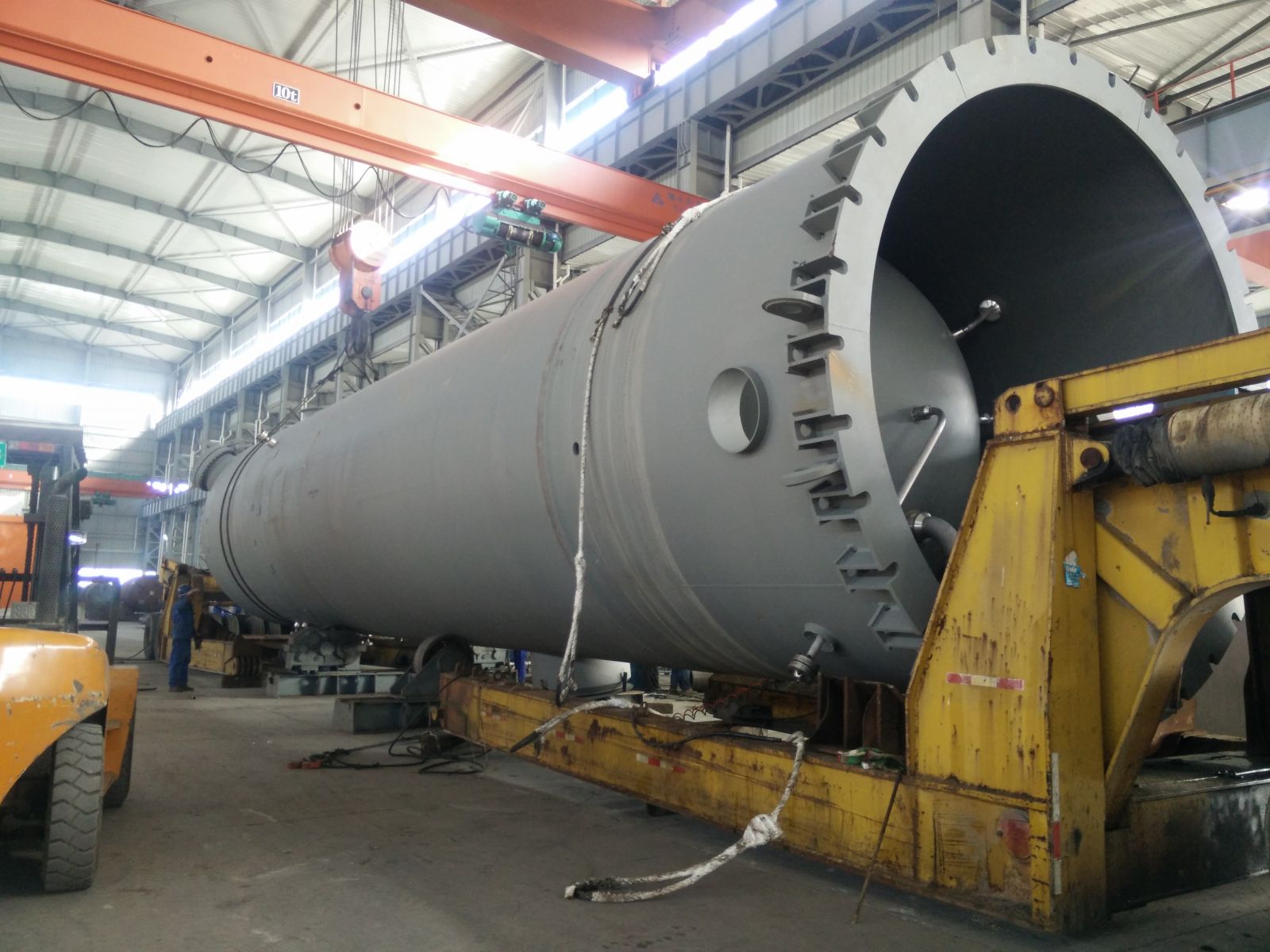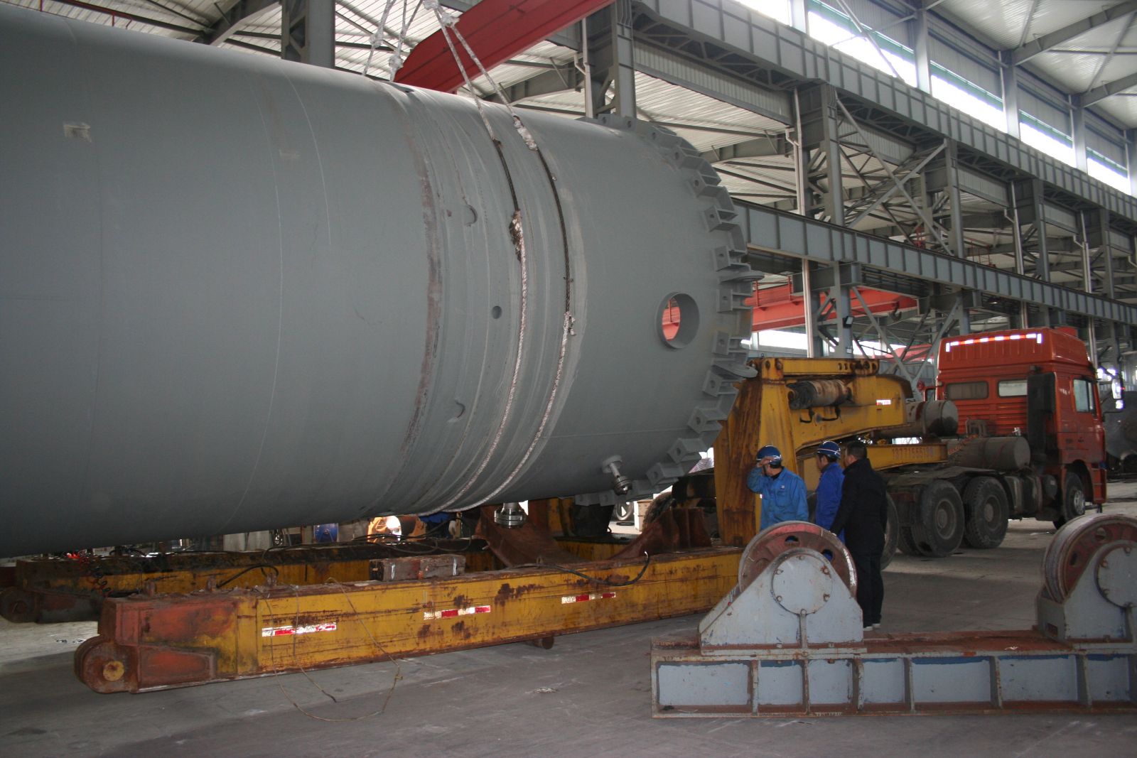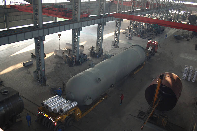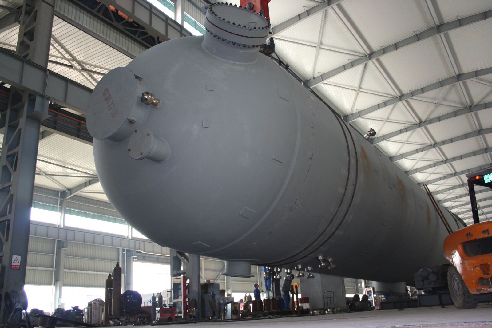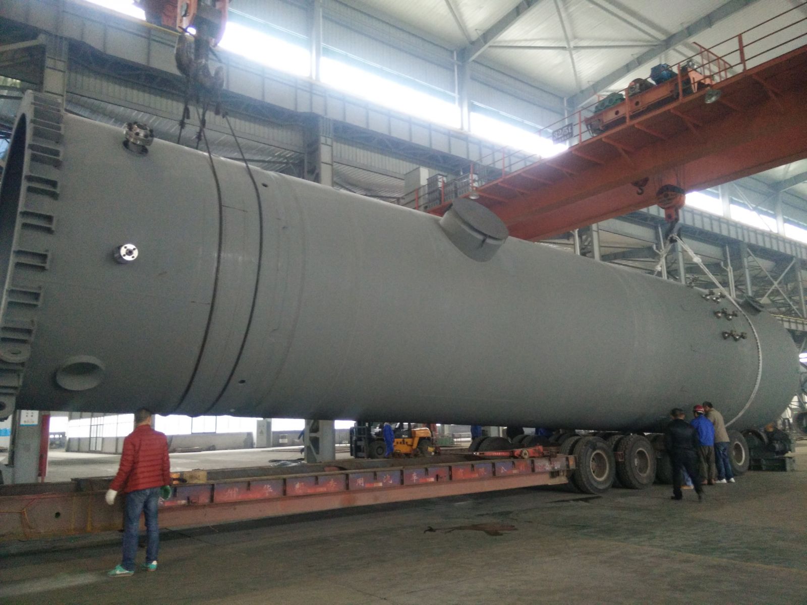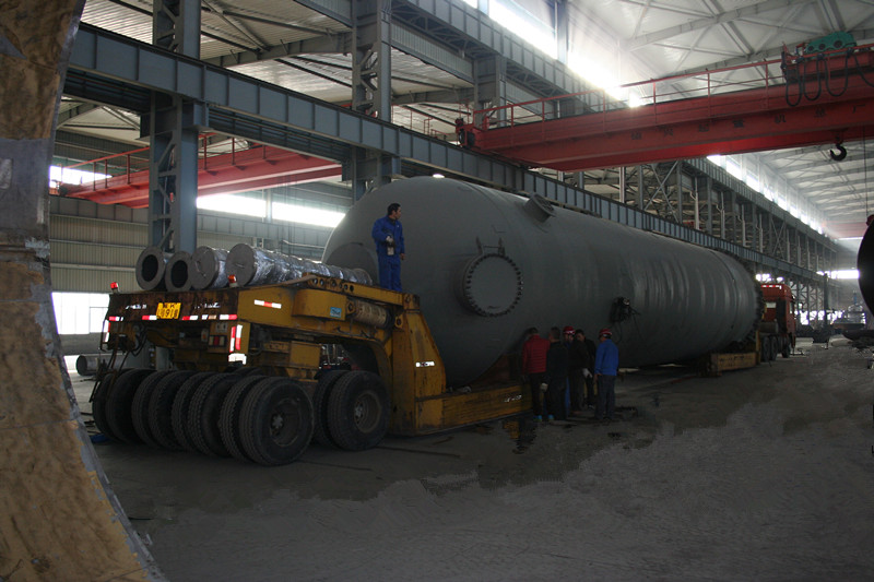 直徑4000mm,壁厚58mm,長約20000mm,S30408+Q345R復合板,重達170噸大型氣液分離器